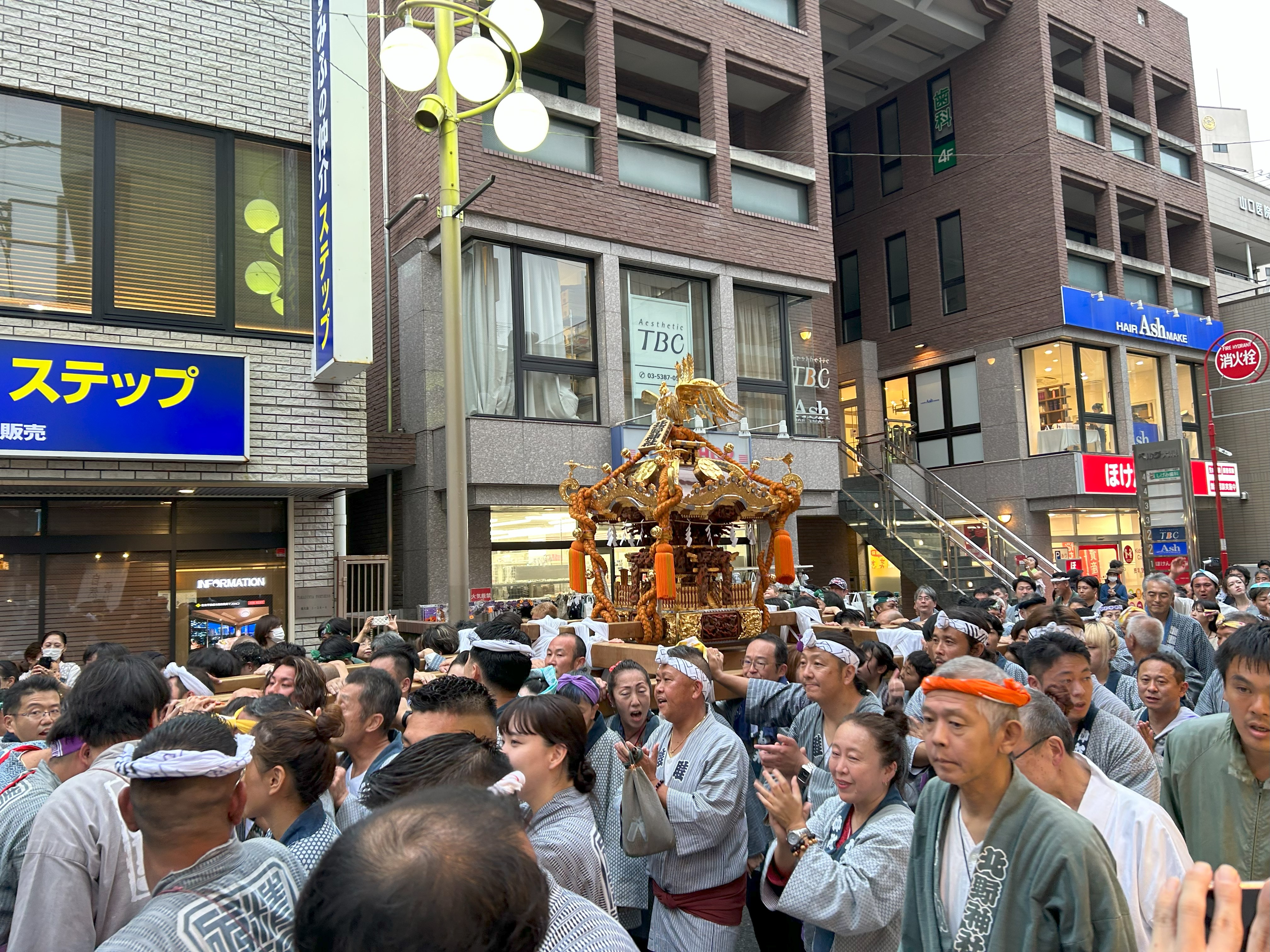 太鼓とお神輿を引きながらたくさんの方が練り歩いていました![]()